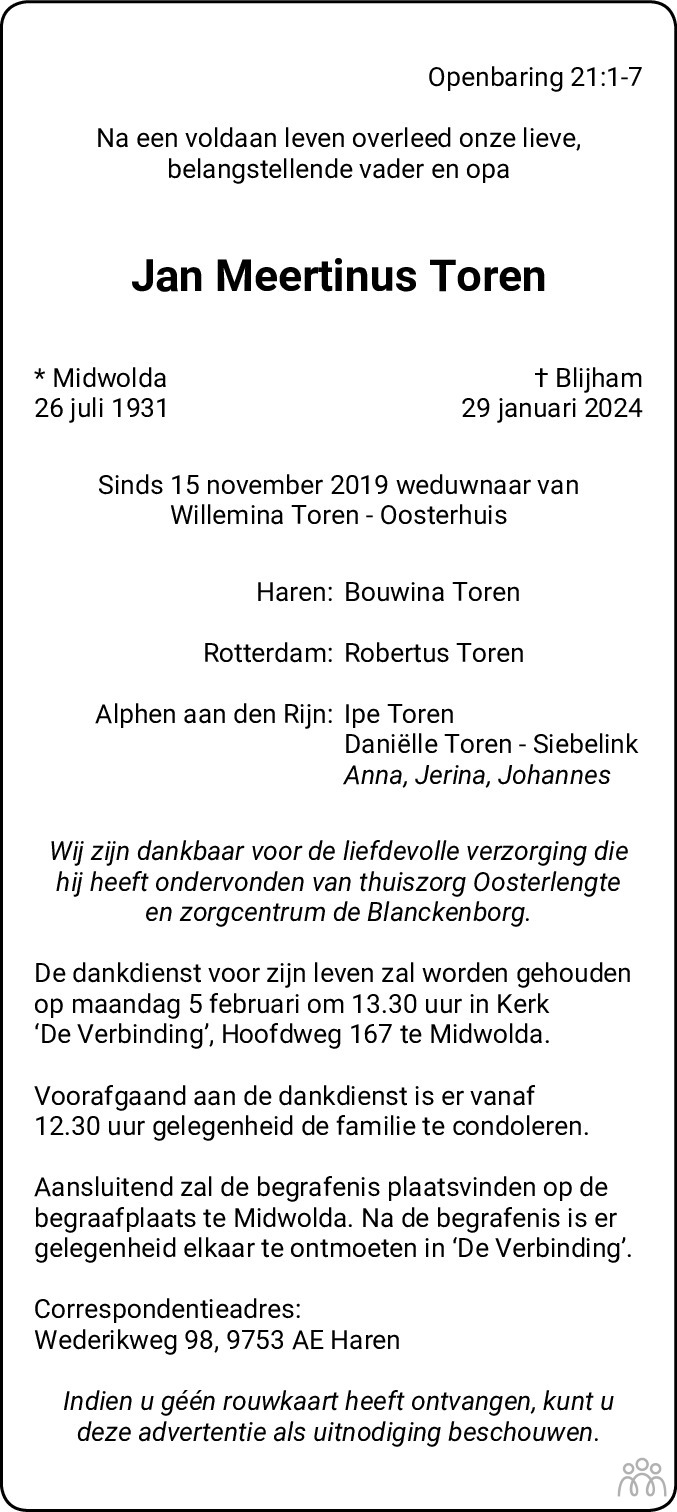Midwolda op 26 juli 1931 •Blijham op 29 januari 2024