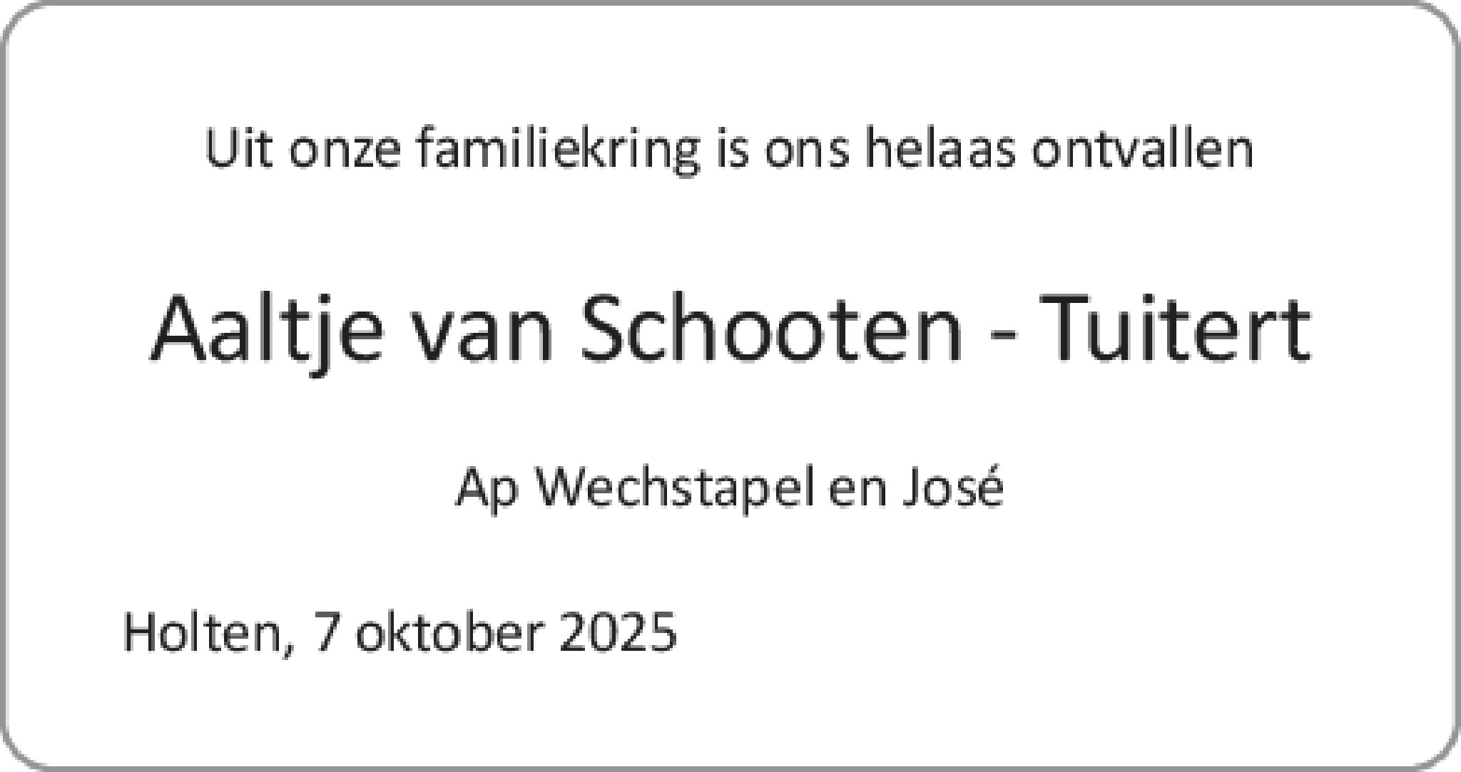 Aaltje van Schooten - Tuitert