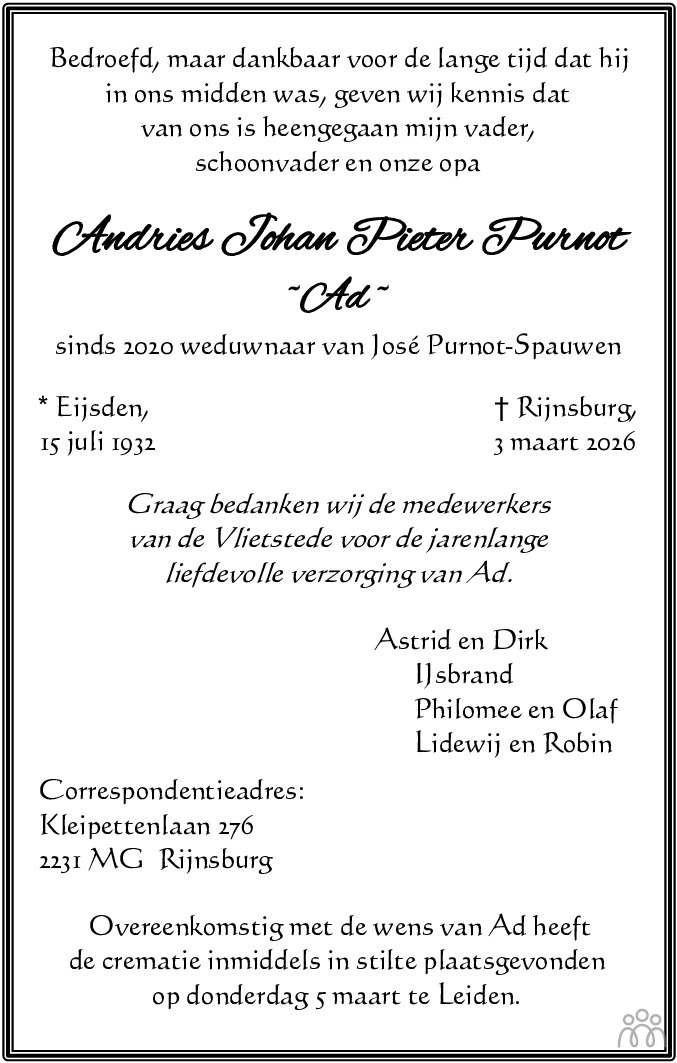 Eijsden op 15 juli 1932 •Rijnsburg op 3 maart 2026