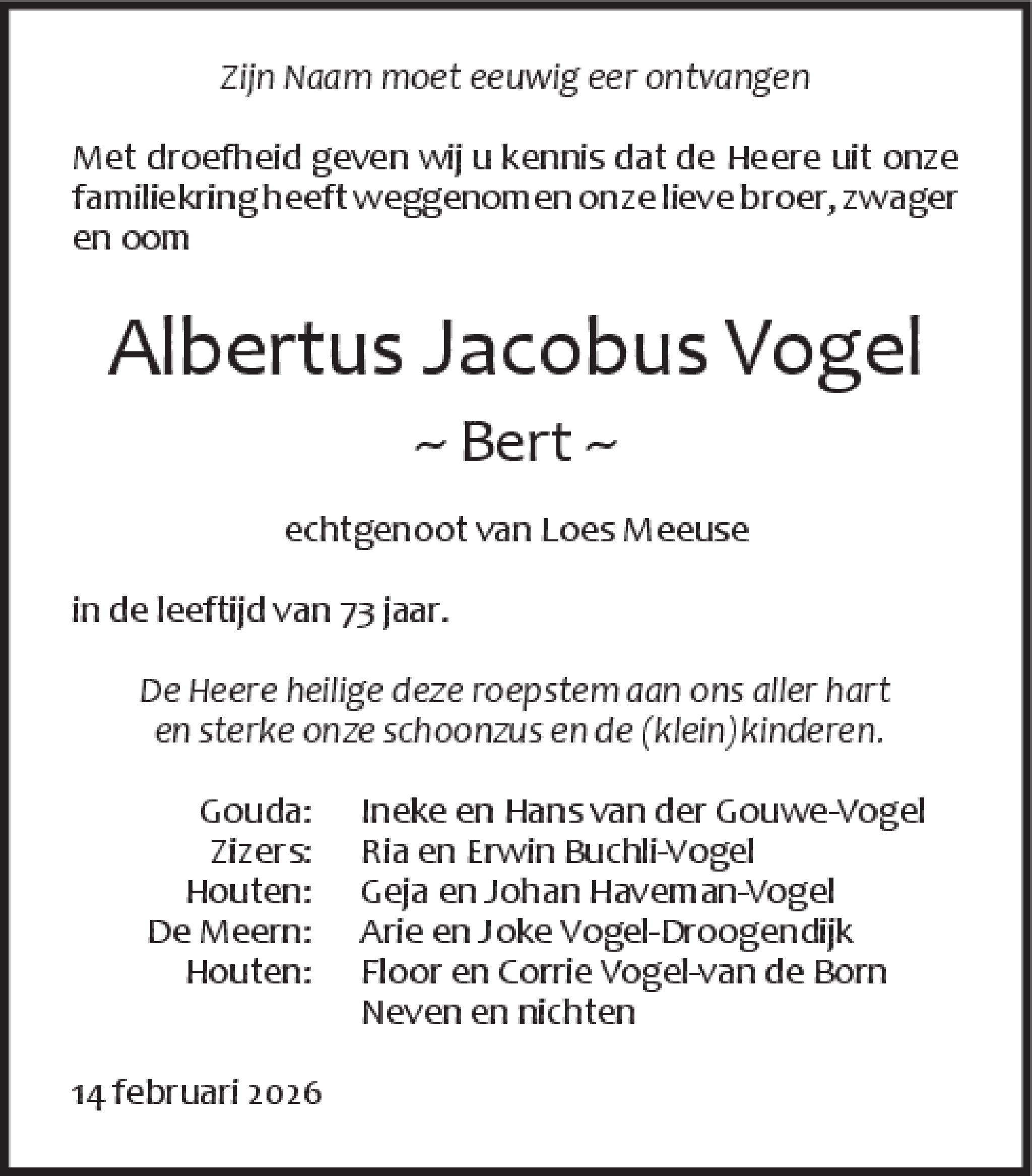 Er zijn nog geen condoleances geplaatst.