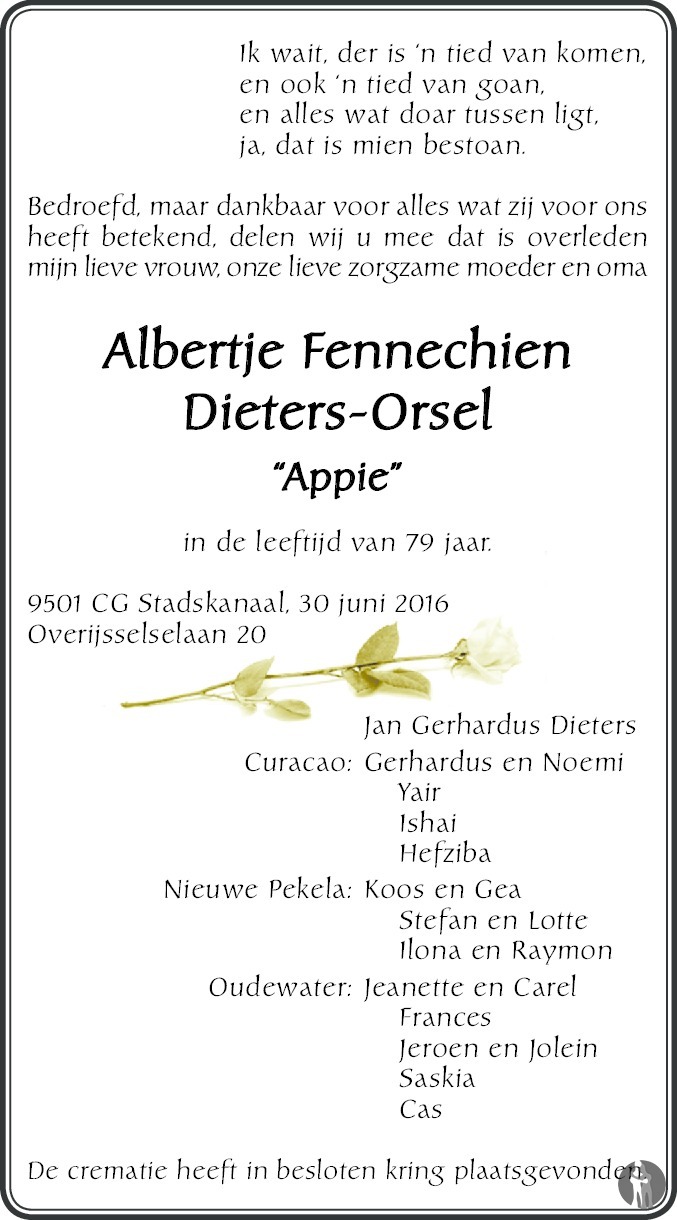 Albertje Fennechien (Appie) Dieters - Orsel