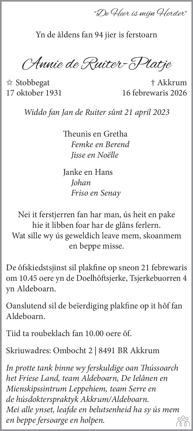 Stobbegat op 17 oktober 1931 •Akkrum op 16 februari 2026