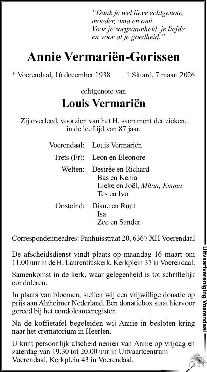 Voerendaal op 16 december 1938 •Sittard op 7 maart 2026