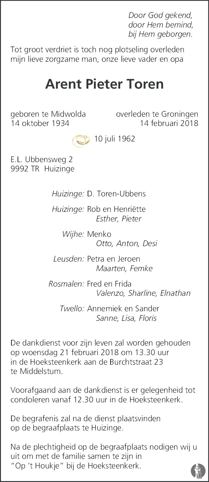 Midwolda op 13 oktober 1934 •Groningen op 14 februari 2018