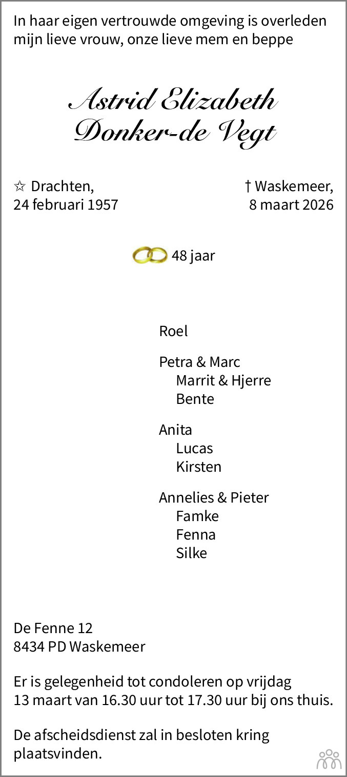 Drachten op 24 februari 1957 •Waskemeer op 8 maart 2026