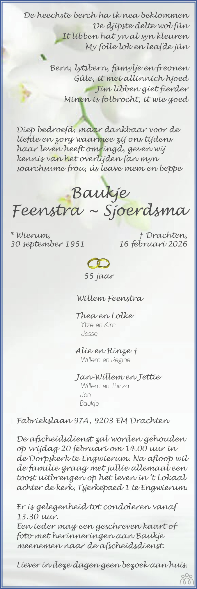 Wierum op 30 september 1951 •Drachten op 16 februari 2026