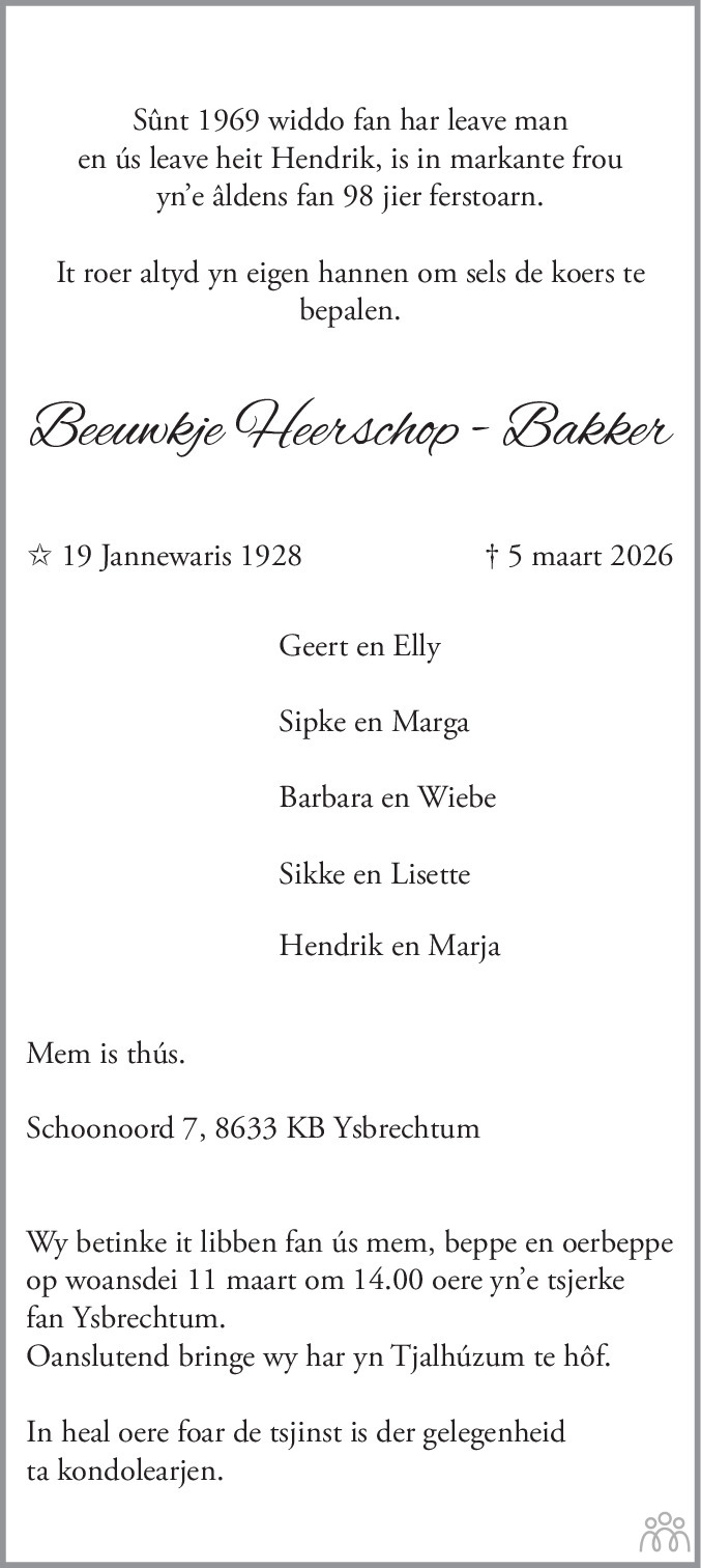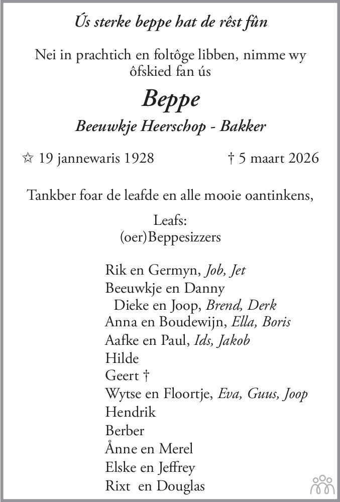 Gecondoleerd met het overlijden van jullie moeder en beppe, veel sterkte toe gewenst