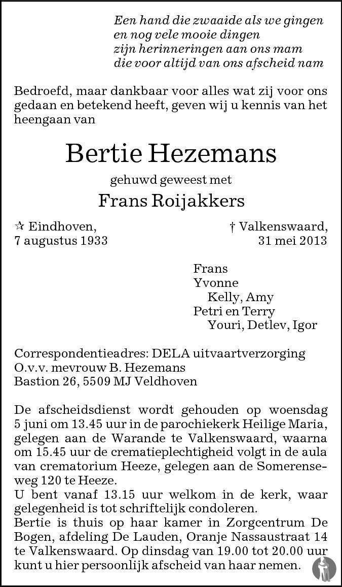Beste Frans, Yvonne en Petri en verdere familieleden, Heel veel kracht en sterkte toegewenst met het verlies van Bertie. In gedachten bij jullie allemaal. Ronald en Jolanda Bosmans