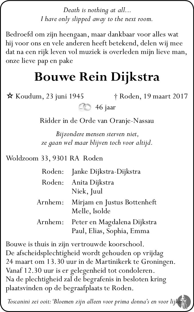 Koudum op 23 juni 1945 •Roden op 19 maart 2017