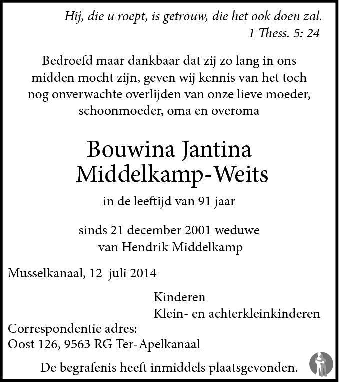 Bouwina Jantina Middelkamp - Weits