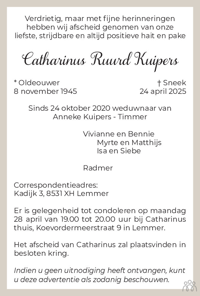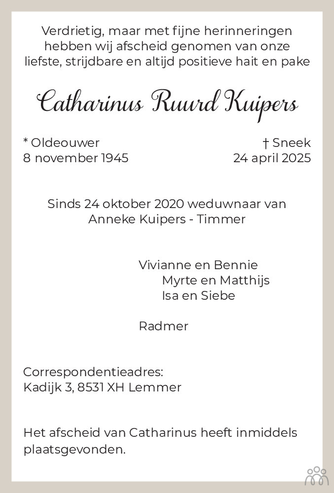 Heel veel sterkte gewenst met het verlies van jullie vader.
