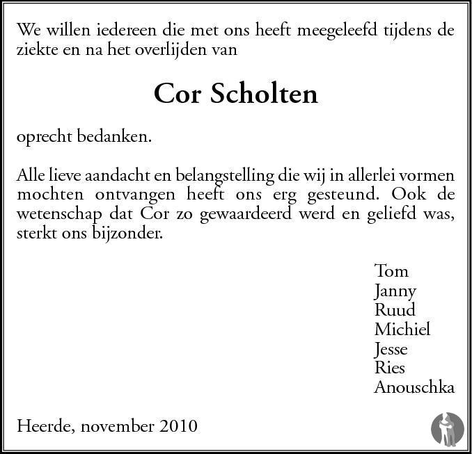 Cor bedankt voor de warmte en gezelligheid en rust nu maar uit.