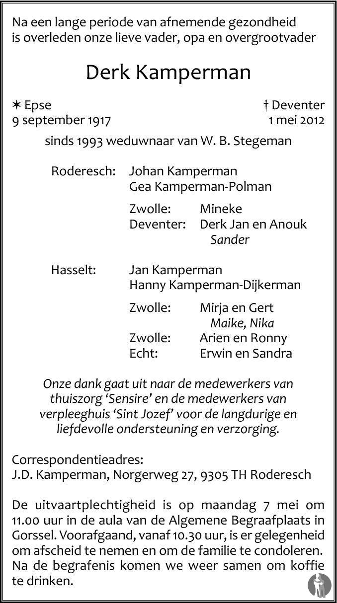 Epse op 9 september 1917 •Deventer op 1 mei 2012
