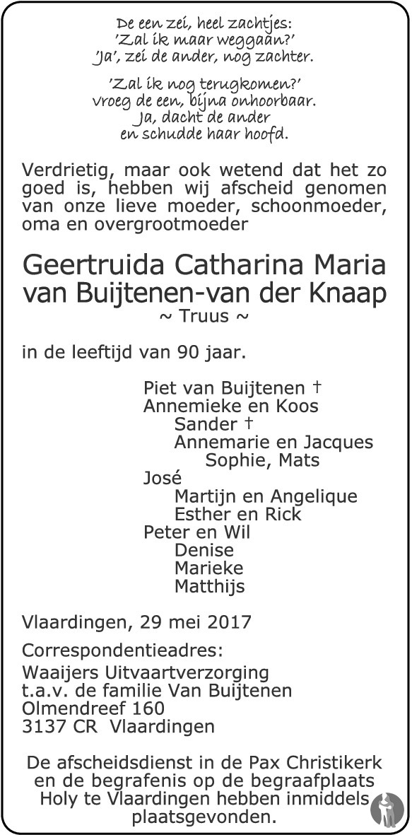 Geertruida Catharina Maria (Truus) Buijtenen - van der Knaap