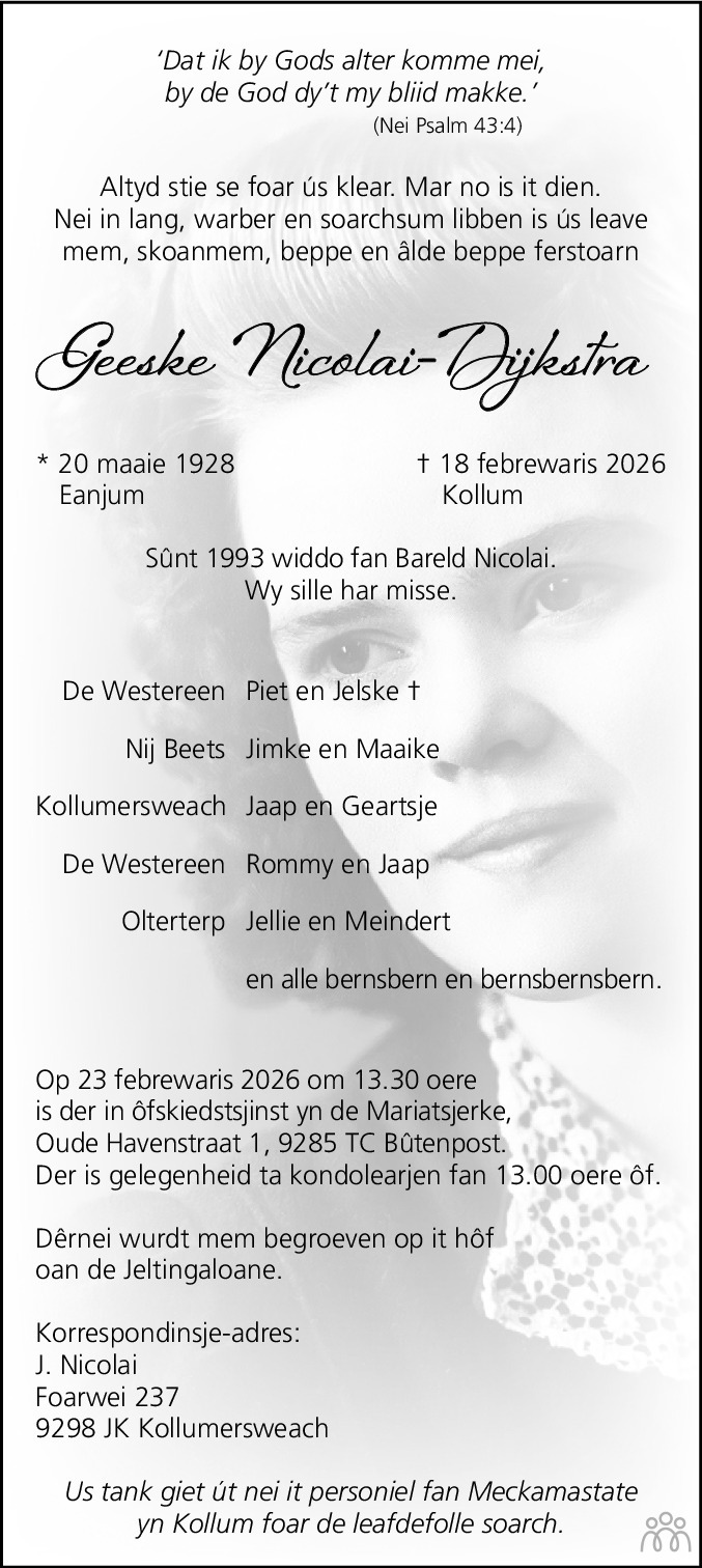 Anjum op 20 mei 1928 •Kollum op 18 februari 2026