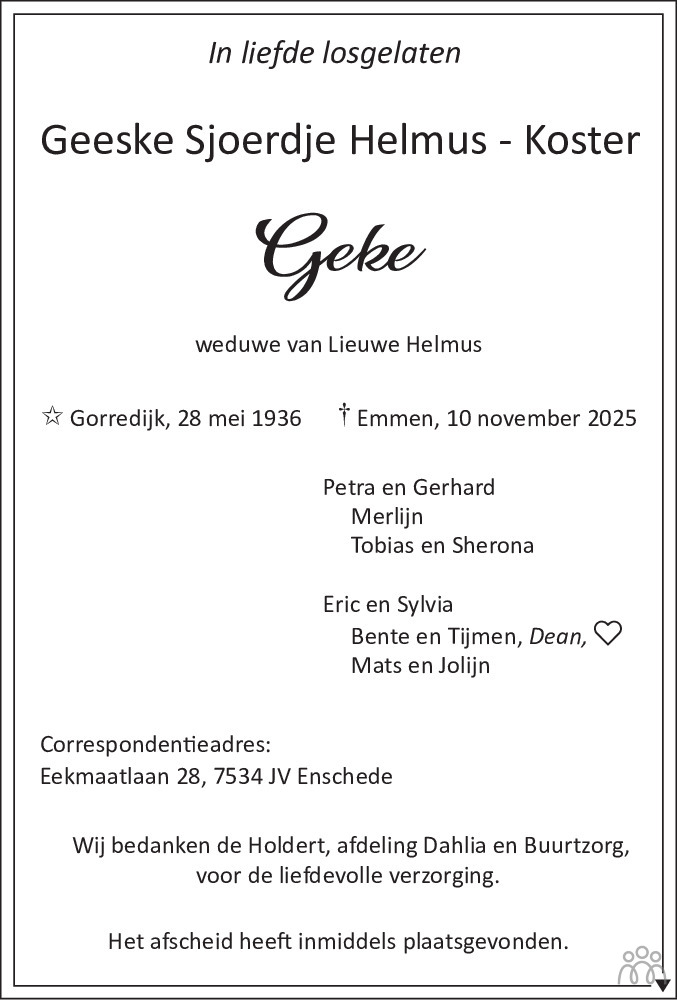 Geeske Sjoerdje (Geke) Helmus-Koster