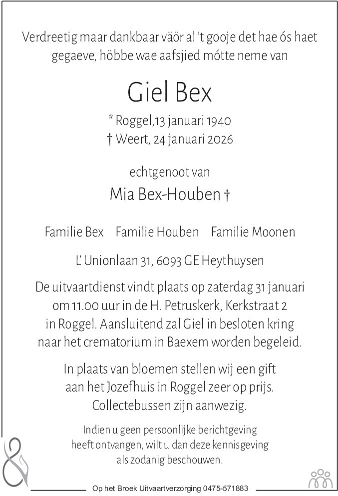 Roggel op 13 januari 1940 •Weert op 24 januari 2026