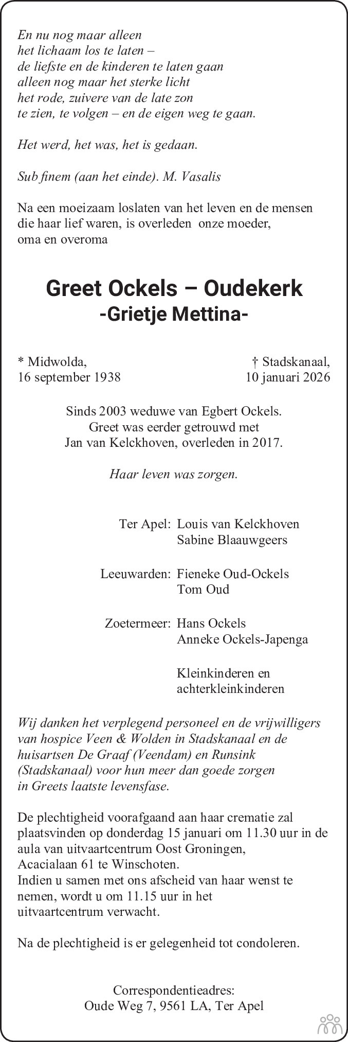 Greet (Grietje Mettina) Ockels-Oudekerk