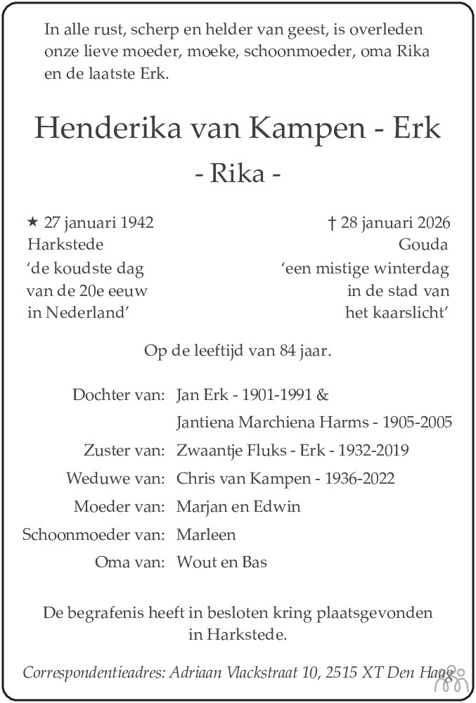 Harkstede op 27 januari 1942 •Gouda op 28 januari 2026