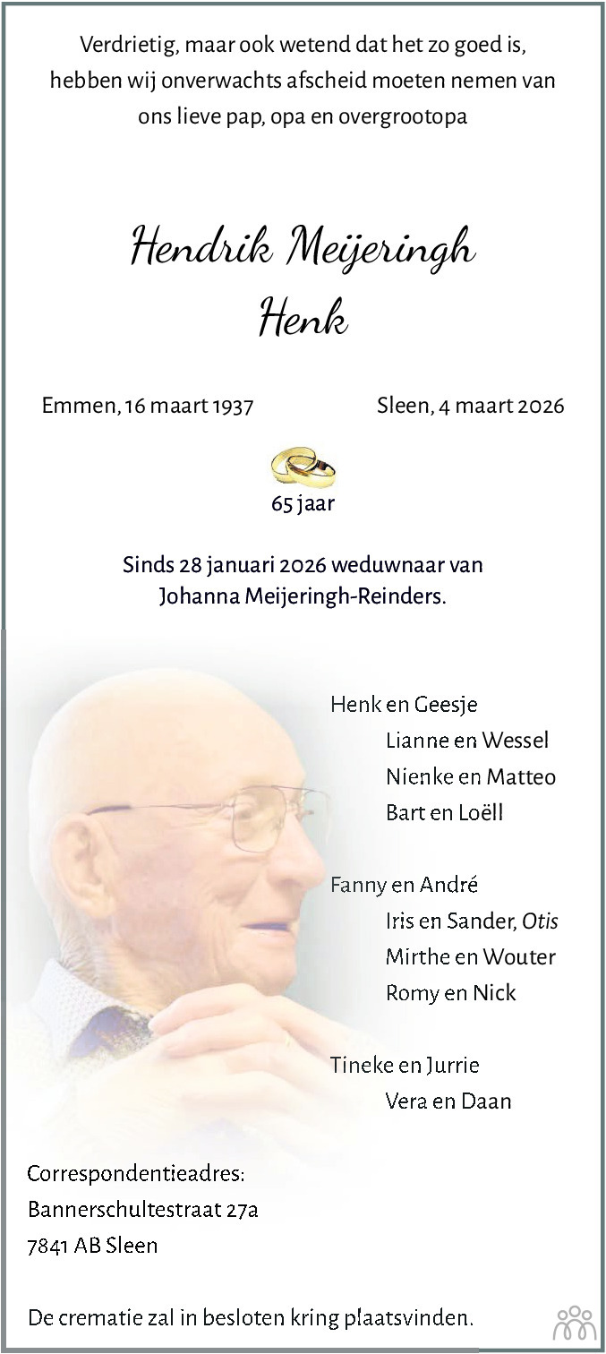 Emmen op 16 maart 1937 •Sleen op 4 maart 2026