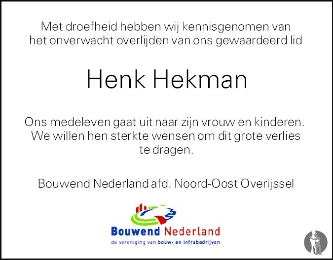 Ik zag net onder de condoleance berichten dat Henk is overleden.