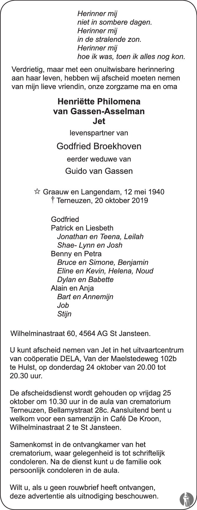 Henrëtte Philomena (Jet) van Gassen - Asselman