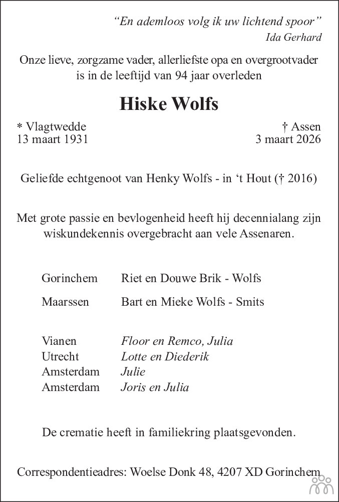 Vlagtwedde op 13 maart 1931 •Assen op 3 maart 2026