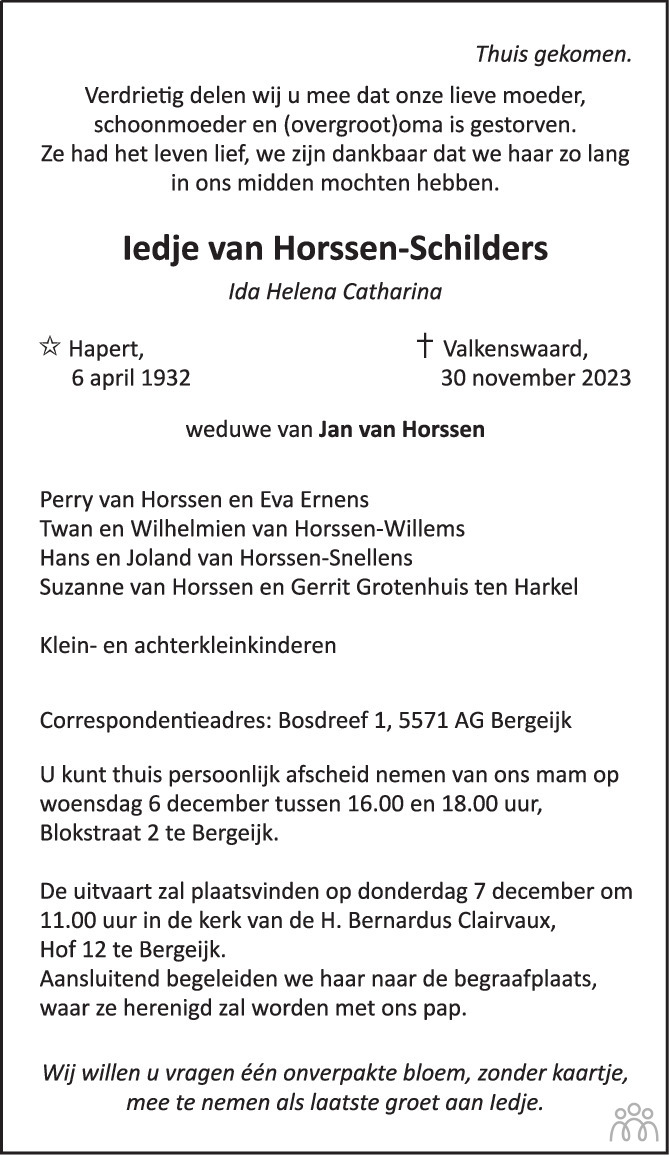 Hapert op 6 april 1932 •Valkenswaard op 30 november 2023