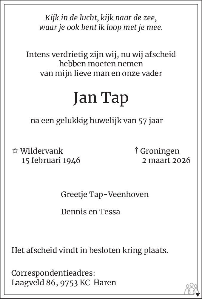 Wildervank op 15 februari 1946 •Groningen op 2 maart 2026