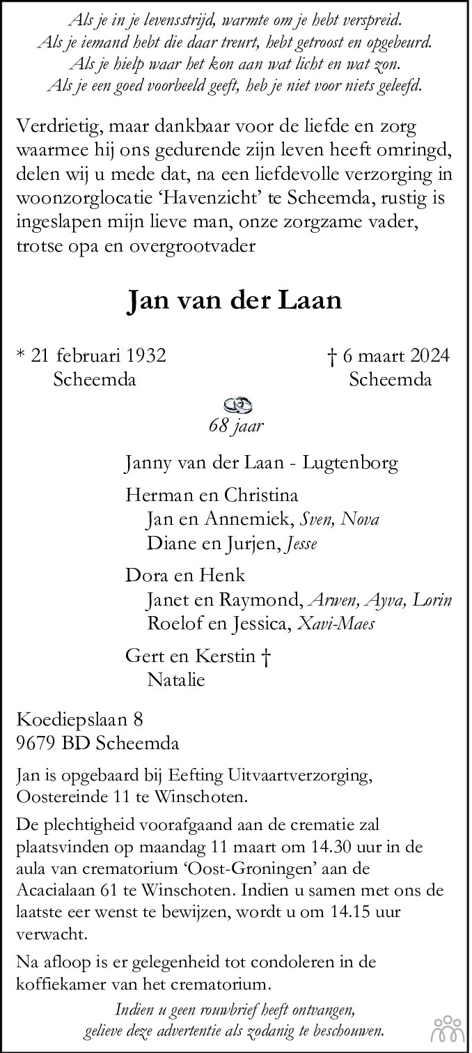 Er zijn nog geen condoleances geplaatst.