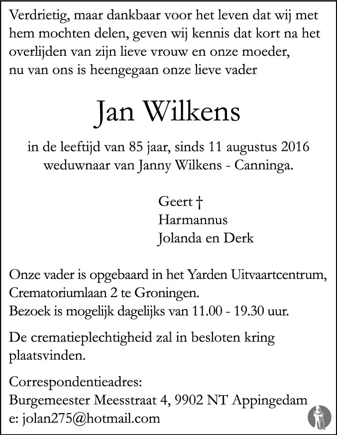 Er zijn nog geen condoleances geplaatst.