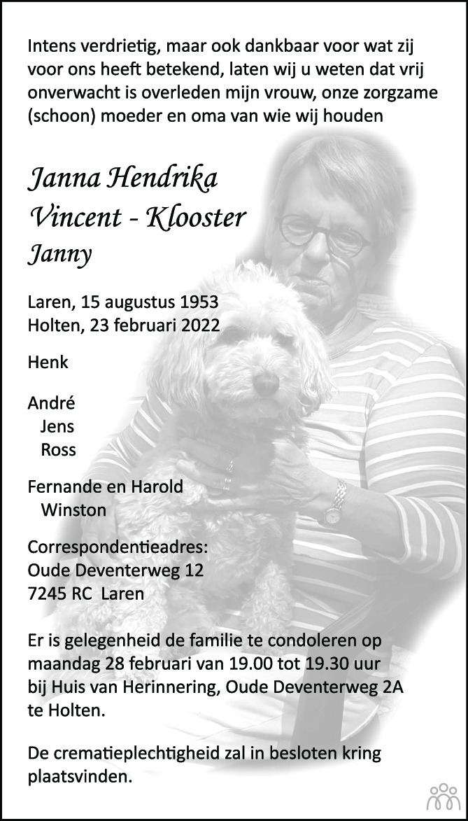 Laren (Nh) op 15 augustus 1953Holten op 23 februari 2022