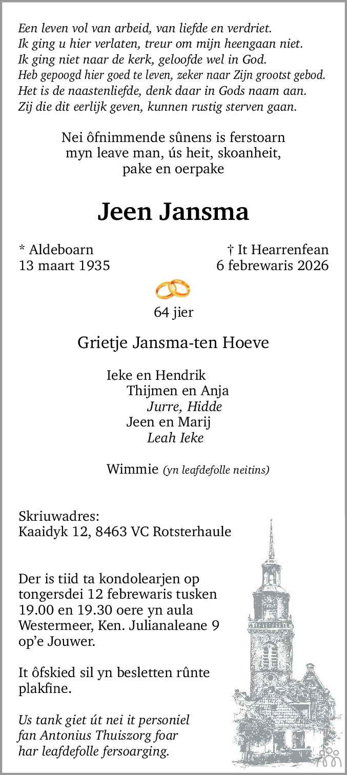 Aldeboarn op 13 maart 1935 •Heerenveen op 6 februari 2026