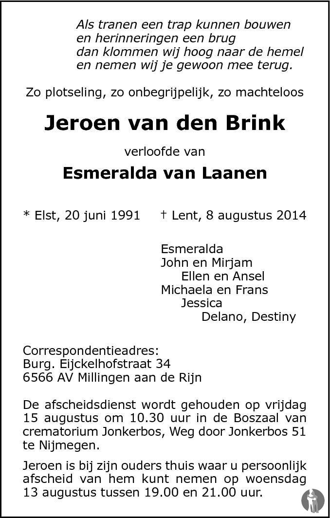 Jeroen heeft ooit bij mij in de klas gezeten (HLO-HAN) en ik herrinner me hem al een bijzonder inteligente en levendige jongen met een geweldig gevoel voor humor. Ik schrik van het bericht van zijn heengaan en wens al zijn geliefden, naasten, familie en vrienden heel veel sterkte met dit onverwachte en onwerkelijke verlies.