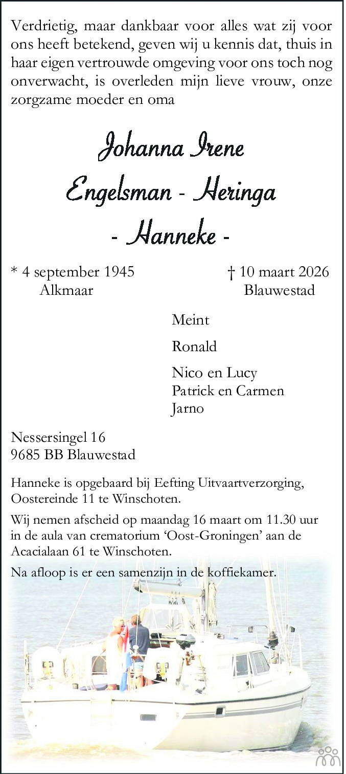 Johanna Irene (Hanneke) Engelsman-Heringa