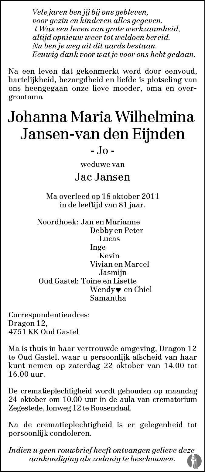 Johanna Maria Wilhelmina (Jo) Jansen - van den Eijnden