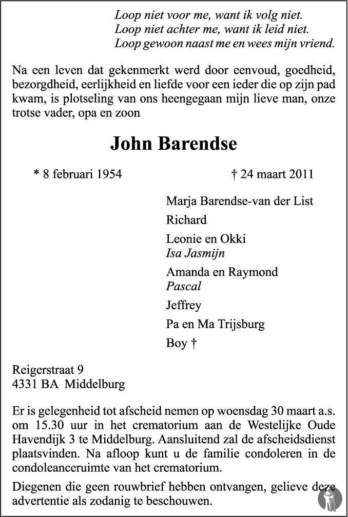 Ik wens Marja en kinderen en verdere familie sterkte. Ik ben geschrokken van dit nieuws wat mij laat ter ore kwam. Ron Gombault, ex-echtgenote Inge Barendse.