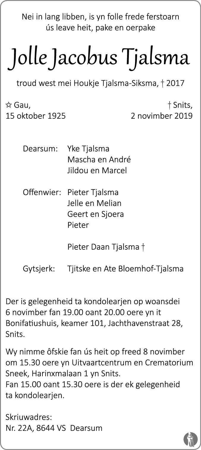 Gauw op 14 oktober 1925 •Sneek op 2 november 2019