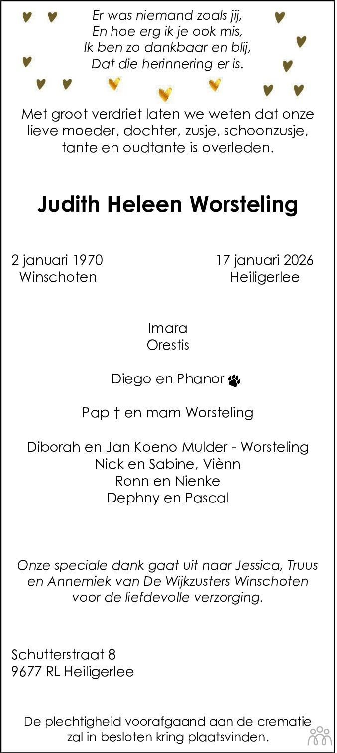 Heel veel sterkte met het verlies van Judith