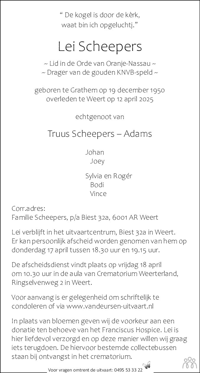 Grathem op 19 december 1950 •Weert op 12 april 2025
