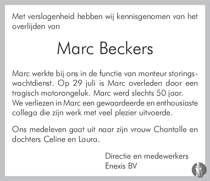 Voor Chantalle, Laura en Celine, alsmede de familie van Marc, wij wensen jullie sterkte en kracht met dit zware verlies