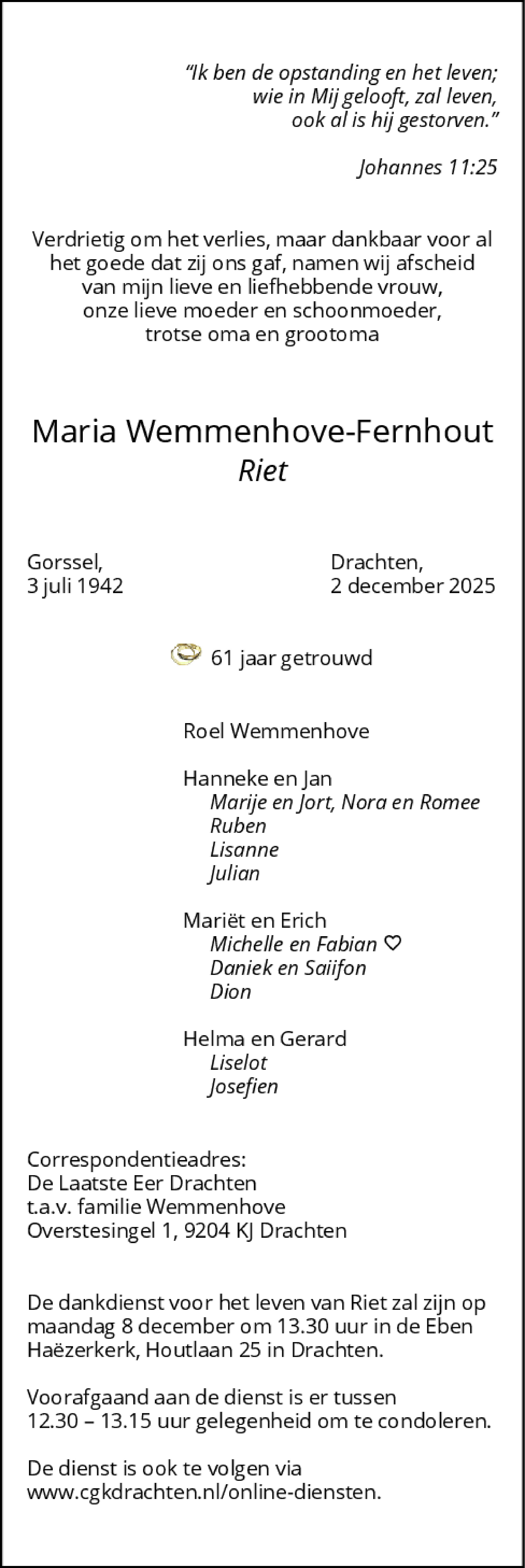 Gorssel op 3 juli 1942 •Drachten op 2 december 2025