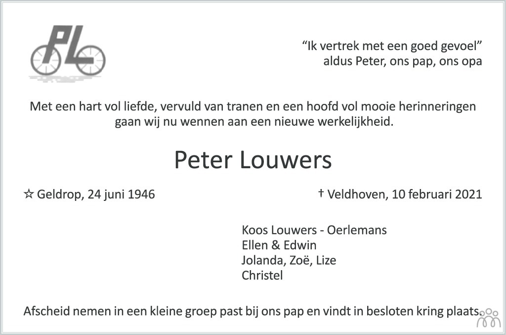 Koos Heel veel sterkte met het verlies van Peter.ook voor de kinderen en Kleinkinderen veel sterkte gewenst