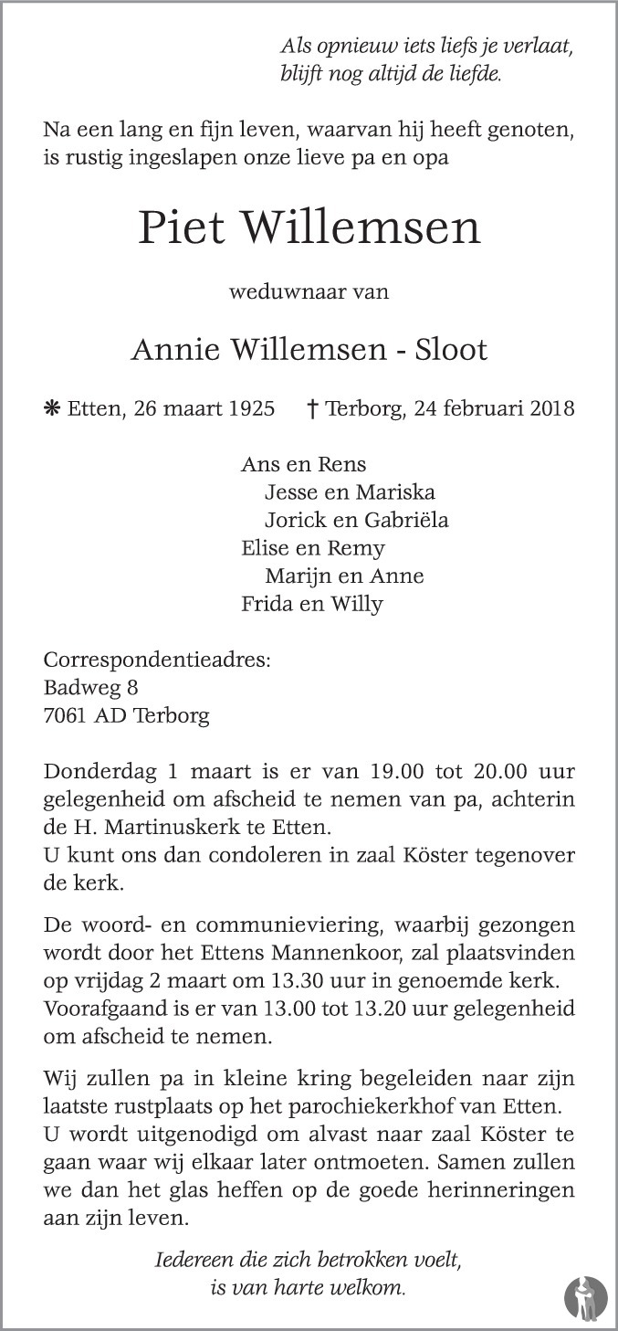 Etten op 25 maart 1925 •Terborg op 24 februari 2018