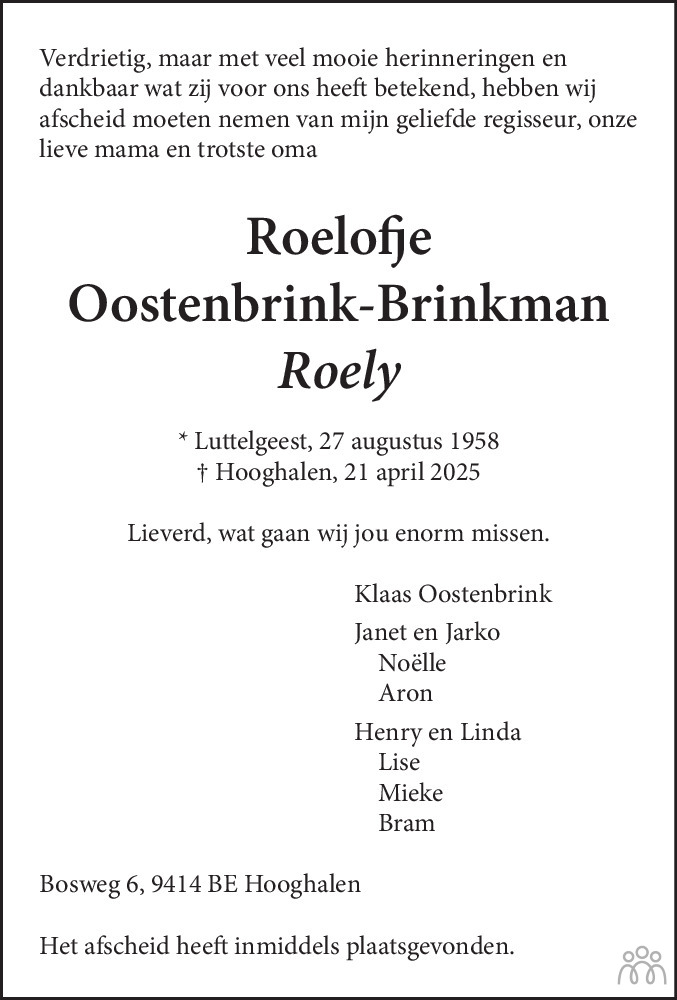 Roelofje (Roely) Oostenbrink-Brinkman
