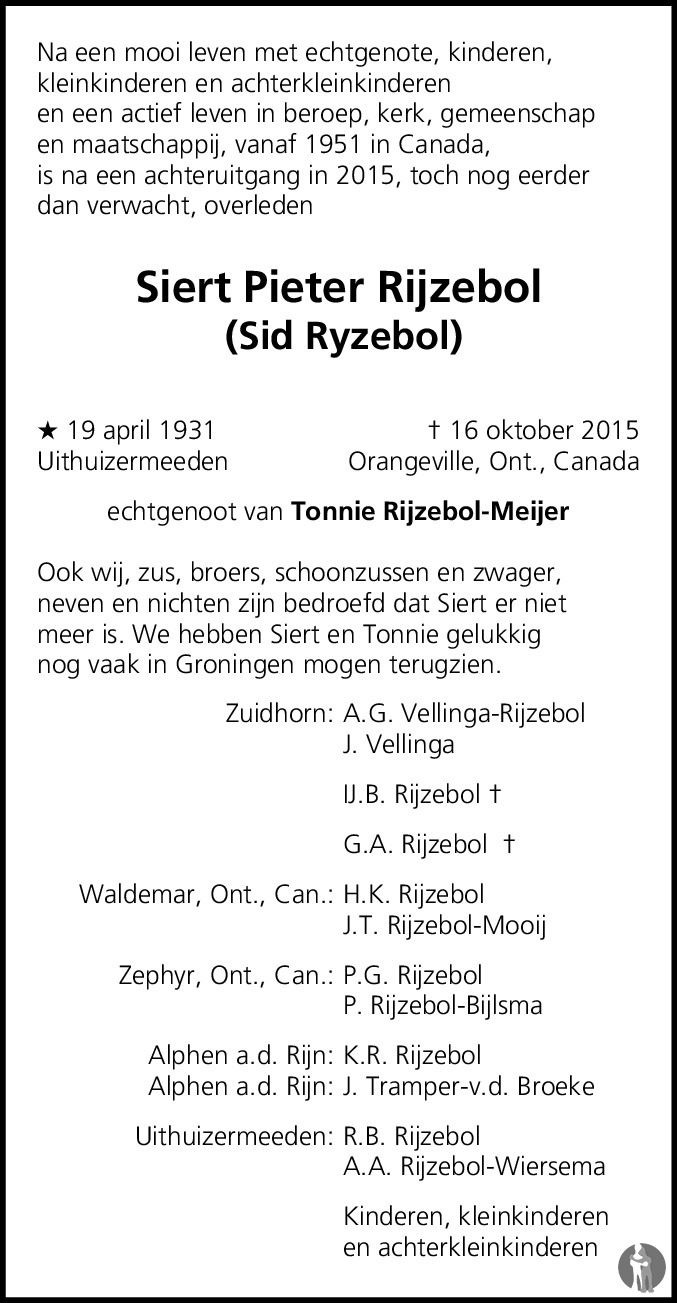 Siert Pieter (Sid Ryzebol) Rijzebol