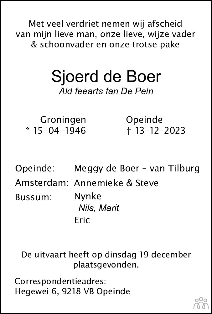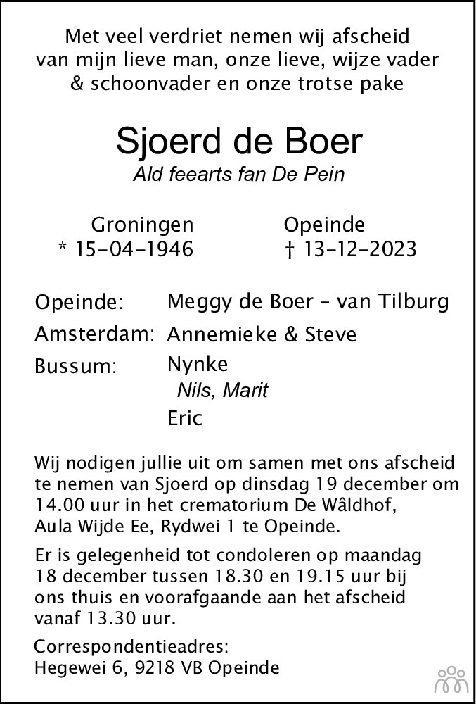 Groningen op 15 april 1946 •Opeinde op 13 december 2023