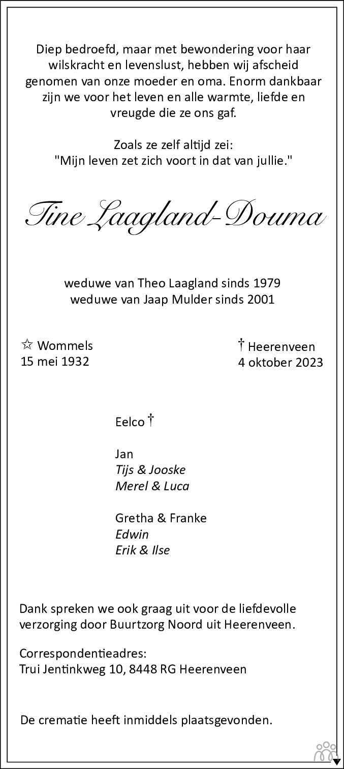 Gecondoleerd met het overlijden van jullie moeder, onze lieve, aardige overbuurvrouw uit de epkemastraat in bolsward