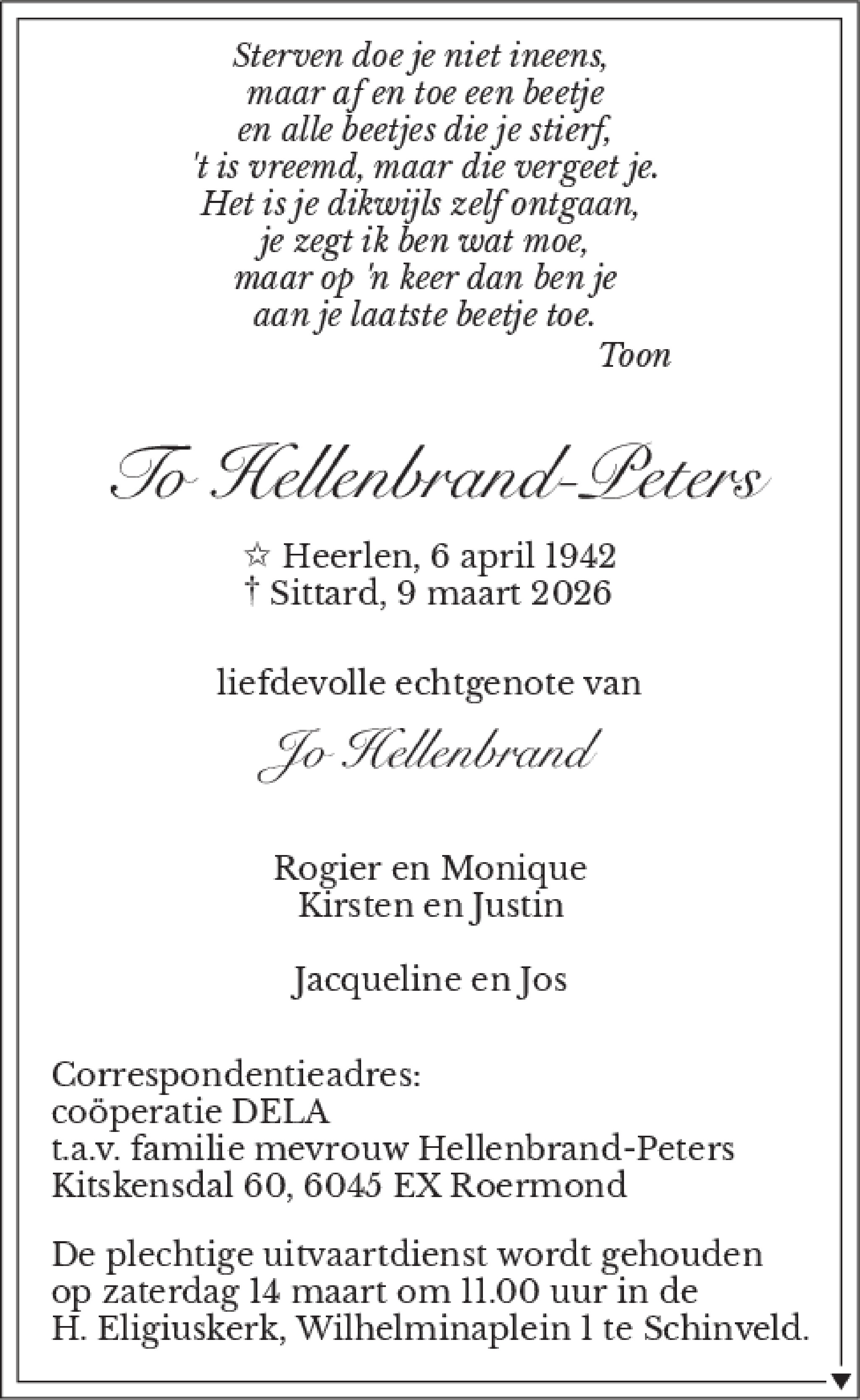 Heerlen op 6 april 1942 •Sittard op 9 maart 2026