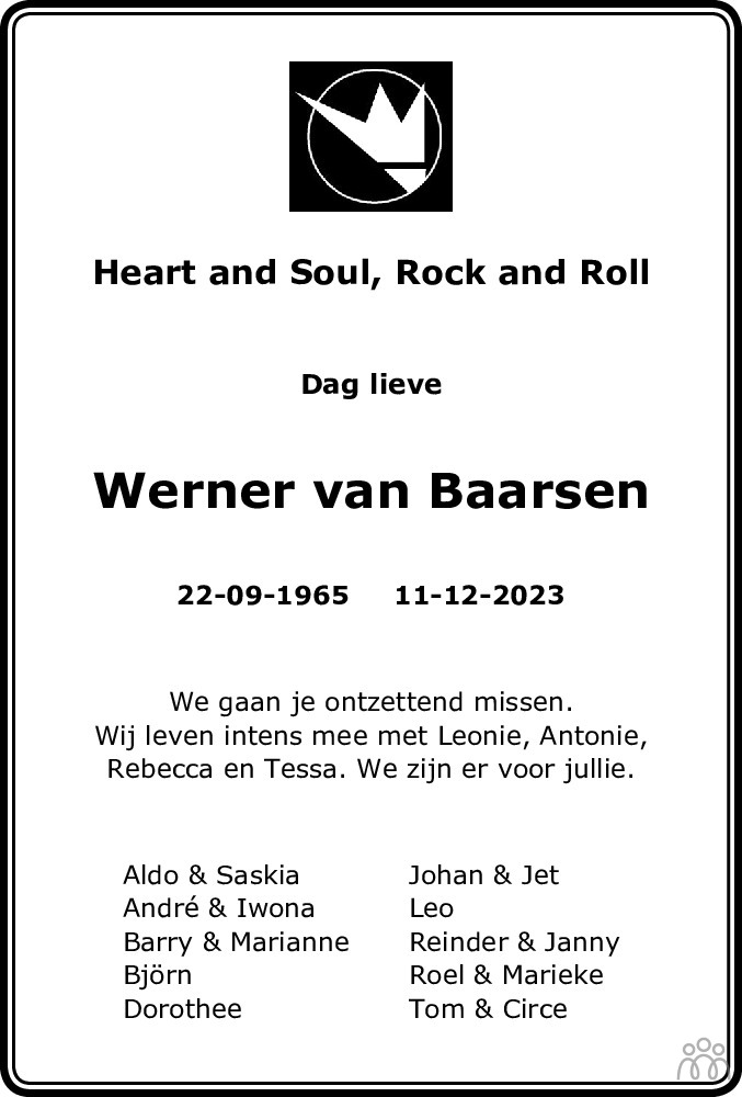 Vandaag hoorden we dat Werner is overleden, wat een schok! Heel veel sterkte gewenst voor de familie en vrienden.